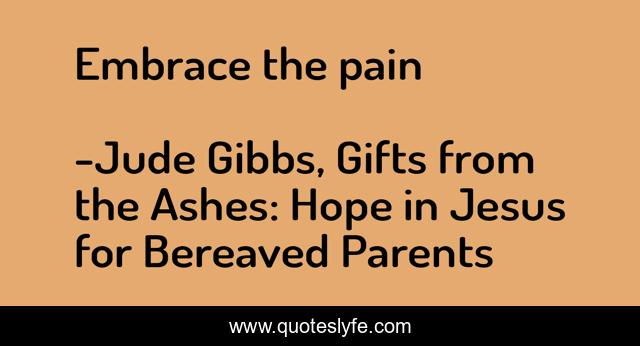 "Jude Gibbs, Gifts from the Ashes: Hope in Jesus for Bereaved Parents Quotes." Quoteslyfe.com, 2025. Sat. 06 Dec. 2025. <https://www.quoteslyfe.com/quote/Embrace-the-pain-20249>.
