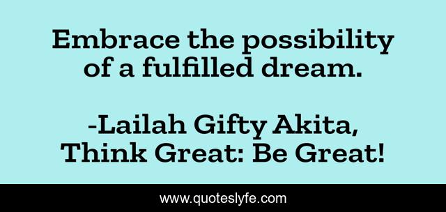"Lailah Gifty Akita, Think Great: Be Great! Quotes." Quoteslyfe.com, 2025. Tue. 09 Dec. 2025. <https://www.quoteslyfe.com/quote/Embrace-the-possibility-of-a-fulfilled-dream-131125>.