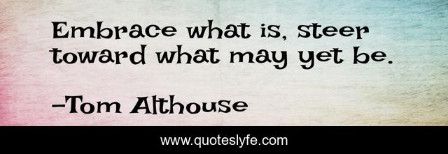 "Tom Althouse Quotes." Quoteslyfe.com, 2025. Sat. 06 Dec. 2025. <https://www.quoteslyfe.com/quote/Embrace-what-is-steer-toward-what-may-116030>.