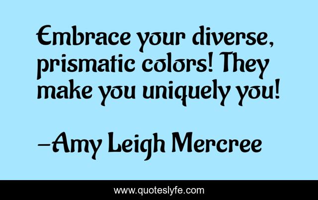 "Amy Leigh Mercree Quotes." Quoteslyfe.com, 2025. Mon. 08 Dec. 2025. <https://www.quoteslyfe.com/quote/Embrace-your-diverse-prismatic-colors-They-make-14369>.