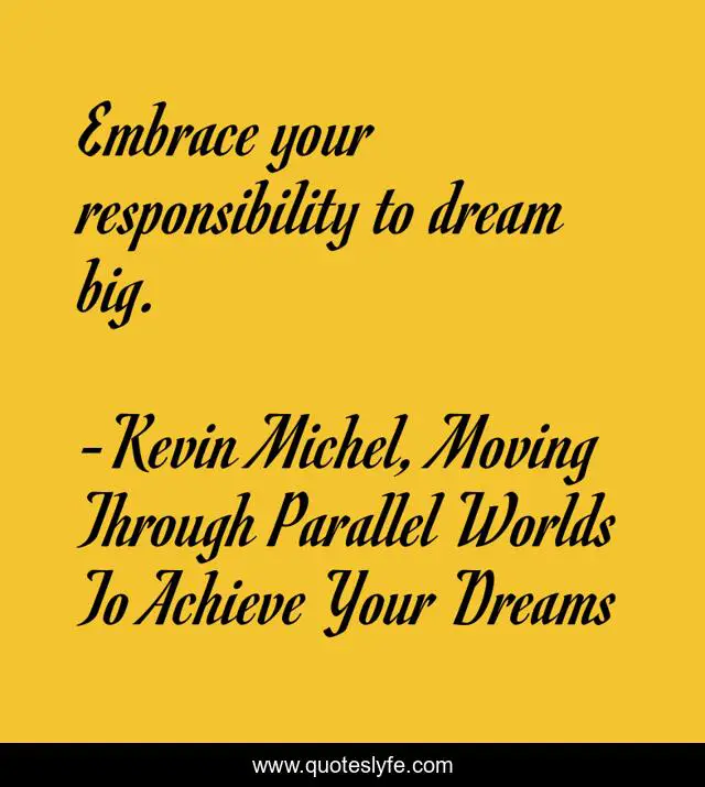 "Kevin Michel, Moving Through Parallel Worlds To Achieve Your Dreams Quotes." Quoteslyfe.com, 2025. Sat. 06 Dec. 2025. <https://www.quoteslyfe.com/quote/Embrace-your-responsibility-to-dream-big-131221>.