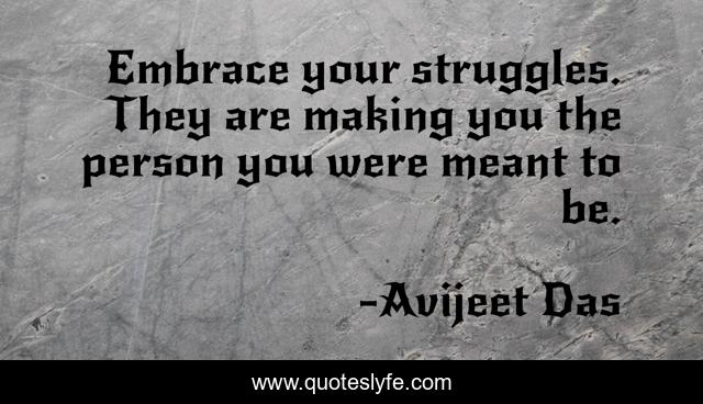 This page presents the quote "Embrace your struggles. They are making you the person you were meant to be.". Author of this quote is Avijeet Das. This quote is about meaning-of-life, struggles,.