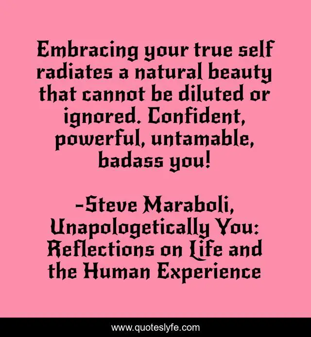 "Steve Maraboli, Unapologetically You: Reflections on Life and the Human Experience Quotes." Quoteslyfe.com, 2025. Mon. 08 Dec. 2025. <https://www.quoteslyfe.com/quote/Embracing-your-true-self-radiates-a-natural-144397>.