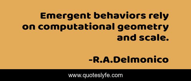 "R.A.Delmonico Quotes." Quoteslyfe.com, 2025. Fri. 05 Dec. 2025. <https://www.quoteslyfe.com/quote/Emergent-behaviors-rely-on-computational-geometry-and-42268>.