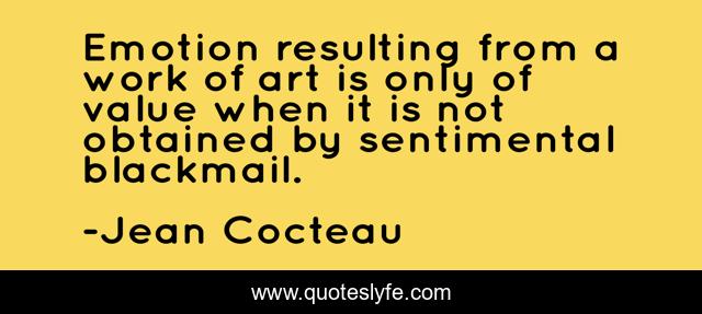 This page presents the quote "Emotion resulting from a work of art is only of value when it is not obtained by sentimental blackmail.". Author of this quote is Jean Cocteau. This quote is about emotion, art, blackmail,.