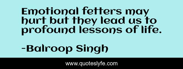 This page presents the quote "Emotional fetters may hurt but they lead us to profound lessons of life.". Author of this quote is Balroop Singh. This quote is about lessons, emotions, life-lessons, emotional-pain,.