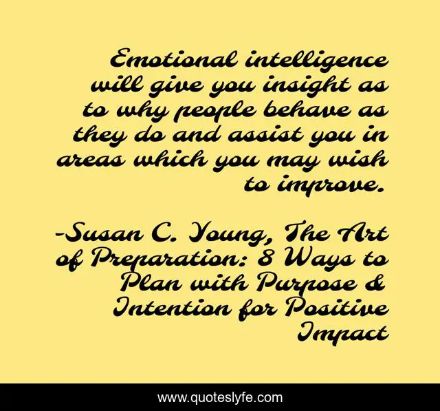 "Susan C. Young, The Art of Preparation: 8 Ways to Plan with Purpose & Intention for Positive Impact Quotes." Quoteslyfe.com, 2025. Mon. 08 Dec. 2025. <https://www.quoteslyfe.com/quote/Emotional-intelligence-will-give-you-insight-as-227521>.