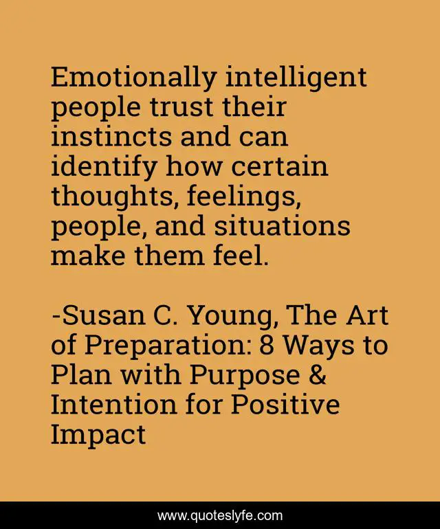 "Susan C. Young, The Art of Preparation: 8 Ways to Plan with Purpose & Intention for Positive Impact Quotes." Quoteslyfe.com, 2025. Mon. 08 Dec. 2025. <https://www.quoteslyfe.com/quote/Emotionally-intelligent-people-trust-their-instincts-and-227482>.