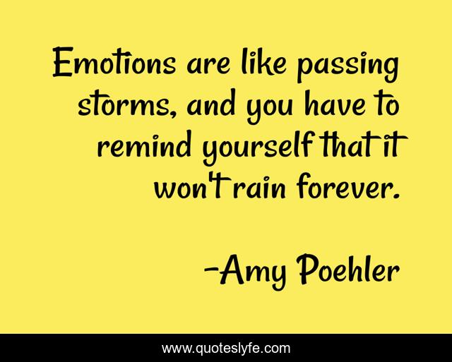 This page presents the quote "Emotions are like passing storms, and you have to remind yourself that it won't rain forever.". Author of this quote is Amy Poehler. This quote is about amy-poehler, enthusiasm, biography, inspirational, yes-please,.