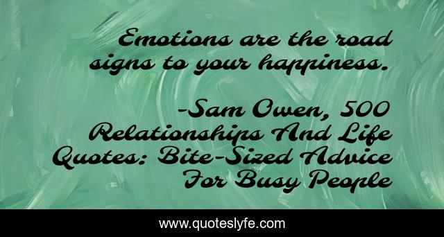 This page presents the quote "Emotions are the road signs to your happiness.". Author of this quote is Sam Owen, 500 Relationships And Life Quotes: Bite-Sized Advice For Busy People. This quote is about relationships, emotions, happiness, psychology,.