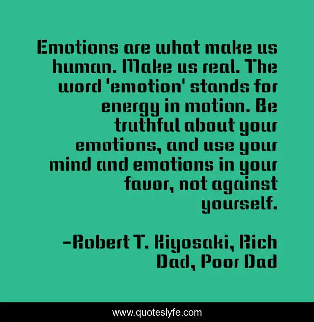 "Robert T. Kiyosaki, Rich Dad, Poor Dad Quotes." Quoteslyfe.com, 2025. Mon. 08 Dec. 2025. <https://www.quoteslyfe.com/quote/Emotions-are-what-make-us-human-Make-70995>.