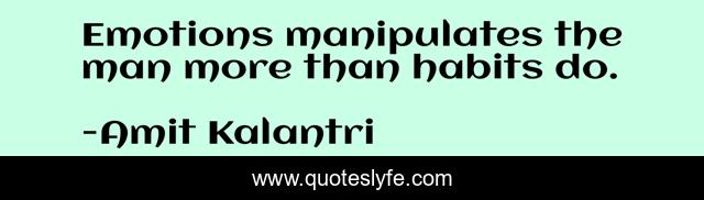 "Amit Kalantri Quotes." Quoteslyfe.com, 2025. Sat. 06 Dec. 2025. <https://www.quoteslyfe.com/quote/Emotions-manipulates-the-man-more-than-habits-99124>.