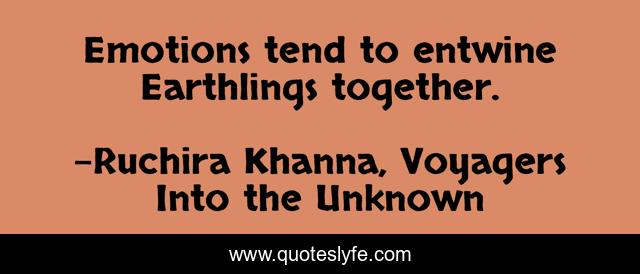 "Ruchira Khanna, Voyagers Into the Unknown Quotes." Quoteslyfe.com, 2025. Mon. 08 Dec. 2025. <https://www.quoteslyfe.com/quote/Emotions-tend-to-entwine-Earthlings-together-100558>.
