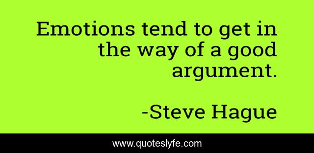 This page presents the quote "Emotions tend to get in the way of a good argument.". Author of this quote is Steve Hague. .