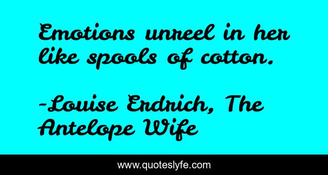 This page presents the quote "Emotions unreel in her like spools of cotton.". Author of this quote is Louise Erdrich, The Antelope Wife. This quote is about emotion, simile, women,.