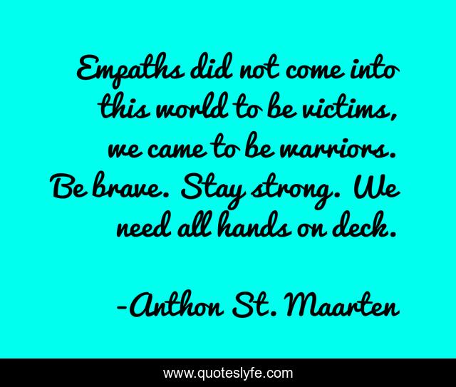 Empaths did not come into this world to be victims, we came to be warriors. Be brave. Stay strong. We need all hands on deck.