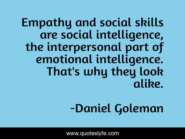This page presents the quote "Empathy and social skills are social intelligence, the interpersonal part of emotional intelligence. That's why they look alike.". Author of this quote is Daniel Goleman. This quote is about empathy, look, why,.