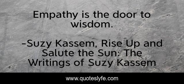 This page presents the quote "Empathy is the door to wisdom.". Author of this quote is Suzy Kassem, Rise Up and Salute the Sun: The Writings of Suzy Kassem. This quote is about empathy, wise, knowledge, compassion, feeling, understanding, understand, empathic, wisdom,.