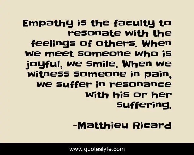 "Matthieu Ricard Quotes." Quoteslyfe.com, 2025. Fri. 05 Dec. 2025. <https://www.quoteslyfe.com/quote/Empathy-is-the-faculty-to-resonate-with-324148>.