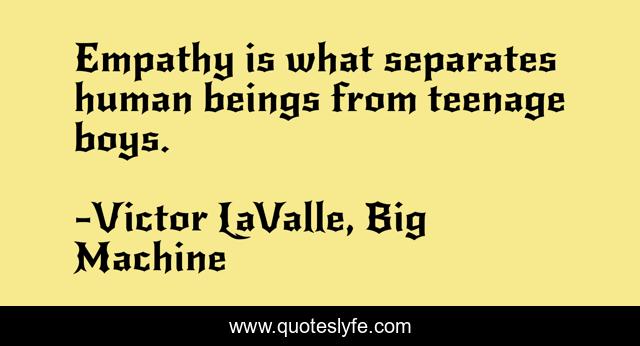 This page presents the quote "Empathy is what separates human beings from teenage boys.". Author of this quote is Victor LaValle, Big Machine. .