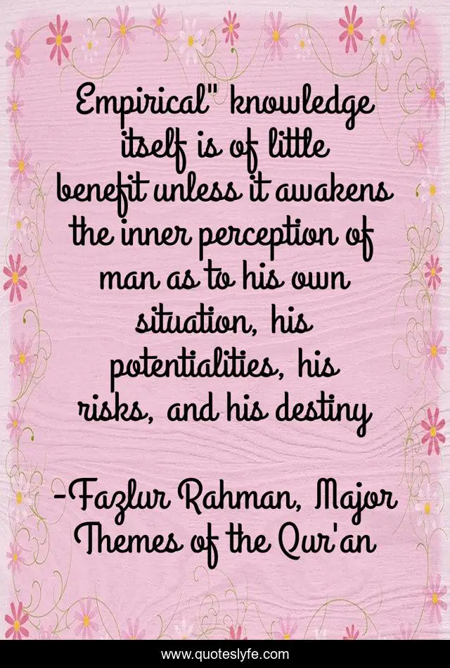 "Fazlur Rahman, Major Themes of the Qur'an Quotes." Quoteslyfe.com, 2025. Fri. 05 Dec. 2025. <https://www.quoteslyfe.com/quote/Empirical-knowledge-itself-is-of-little-benefit-187695>.