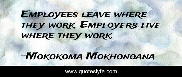 "Mokokoma Mokhonoana Quotes." Quoteslyfe.com, 2025. Fri. 05 Dec. 2025. <https://www.quoteslyfe.com/quote/Employees-leave-where-they-work-Employers-live-197965>.