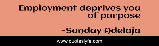 This page presents the quote "Employment deprives you of purpose". Author of this quote is Sunday Adelaja. This quote is about life, blessing, finance, money, deprivation, work, job, joblessness, purpose,.