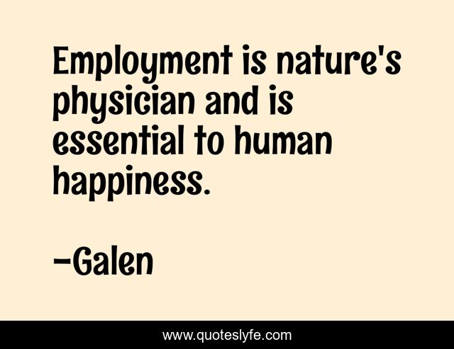 This page presents the quote "Employment is nature's physician and is essential to human happiness.". Author of this quote is Galen. .
