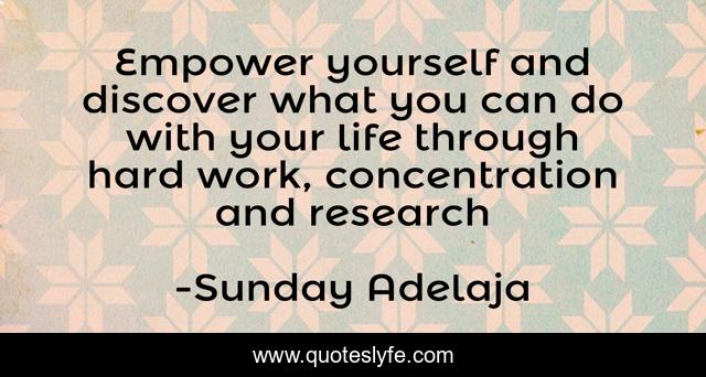 This page presents the quote "Empower yourself and discover what you can do with your life through hard work, concentration and research". Author of this quote is Sunday Adelaja. This quote is about empowerment, blessing, finance, hard-work, money, empower, work, life, research,.