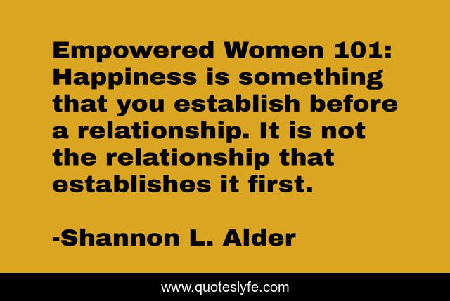 This page presents the quote "Empowered Women 101: Happiness is something that you establish before a relationship. It is not the relationship that establishes it first.". Author of this quote is Shannon L. Alder. This quote is about relationships, self-love, empowering-women-101, stayingpositiveu-com, establish, happiness,.