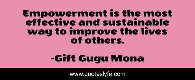 This page presents the quote "Empowerment is the most effective and sustainable way to improve the lives of others.". Author of this quote is Gift Gugu Mona. This quote is about sustainable, empowerment, most-effective, improve-lives, way,.