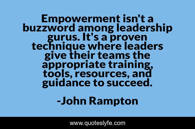 This page presents the quote "Empowerment isn't a buzzword among leadership gurus. It's a proven technique where leaders give their teams the appropriate training, tools, resources, and guidance to succeed.". Author of this quote is John Rampton. This quote is about training, tools, resources,.