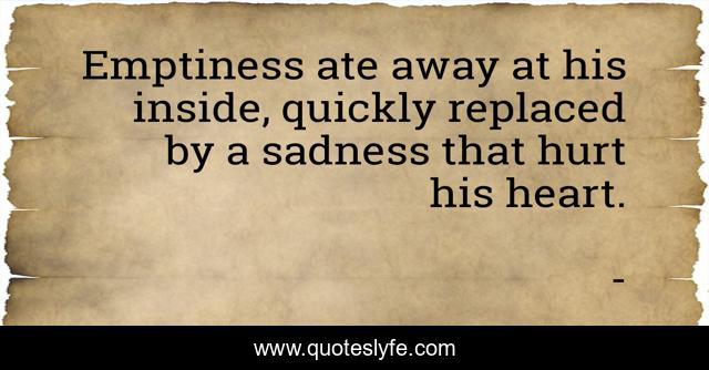 This page presents the quote "Emptiness ate away at his inside, quickly replaced by a sadness that hurt his heart.". Author of this quote is . This quote is about maze, sadness, sad, powerless, trapped,.