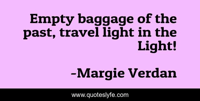 This page presents the quote "Empty baggage of the past, travel light in the Light!". Author of this quote is Margie Verdan. This quote is about baggage, travel, light,.