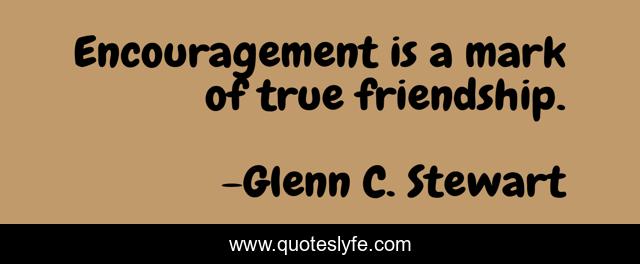 This page presents the quote "Encouragement is a mark of true friendship.". Author of this quote is Glenn C. Stewart. This quote is about friendship, encouragement,.
