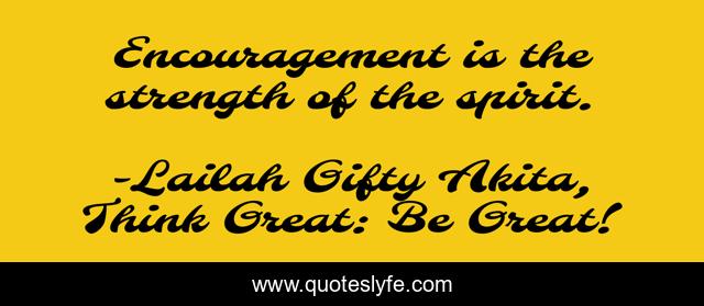 "Lailah Gifty Akita, Think Great: Be Great! Quotes." Quoteslyfe.com, 2025. Tue. 09 Dec. 2025. <https://www.quoteslyfe.com/quote/Encouragement-is-the-strength-of-the-spirit-94934>.