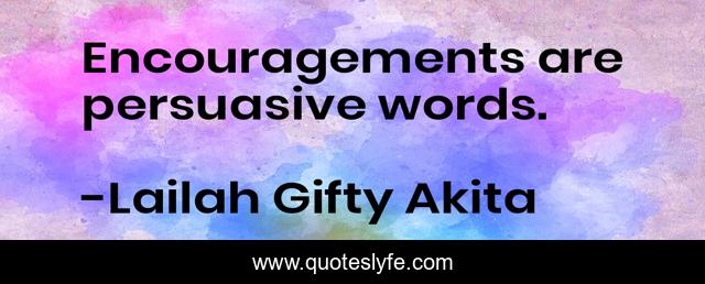 "Lailah Gifty Akita Quotes." Quoteslyfe.com, 2025. Sat. 06 Dec. 2025. <https://www.quoteslyfe.com/quote/Encouragements-are-persuasive-words-185632>.