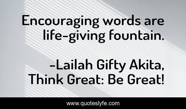 "Lailah Gifty Akita, Think Great: Be Great! Quotes." Quoteslyfe.com, 2025. Tue. 09 Dec. 2025. <https://www.quoteslyfe.com/quote/Encouraging-words-are-life-giving-fountain-95244>.