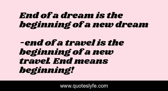 "end of a travel is the beginning of a new travel. End means beginning! Quotes." Quoteslyfe.com, 2025. Mon. 08 Dec. 2025. <https://www.quoteslyfe.com/quote/End-of-a-dream-is-the-beginning-257499>.