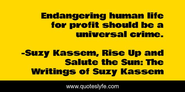 "Suzy Kassem, Rise Up and Salute the Sun: The Writings of Suzy Kassem Quotes." Quoteslyfe.com, 2025. Tue. 09 Dec. 2025. <https://www.quoteslyfe.com/quote/Endangering-human-life-for-profit-should-be-54979>.