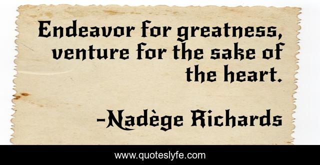 "Nadège Richards Quotes." Quoteslyfe.com, 2025. Mon. 08 Dec. 2025. <https://www.quoteslyfe.com/quote/Endeavor-for-greatness-venture-for-the-sake-165882>.