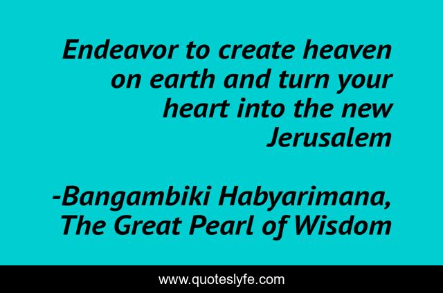 "Bangambiki Habyarimana, The Great Pearl of Wisdom Quotes." Quoteslyfe.com, 2025. Mon. 08 Dec. 2025. <https://www.quoteslyfe.com/quote/Endeavor-to-create-heaven-on-earth-and-179788>.