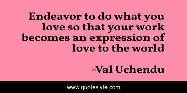 This page presents the quote "Endeavor to do what you love so that your work becomes an expression of love to the world". Author of this quote is Val Uchendu. This quote is about love, work, wisdom, world, expression, affection,.