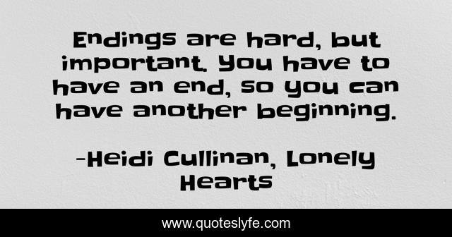 "Heidi Cullinan, Lonely Hearts Quotes." Quoteslyfe.com, 2025. Sat. 06 Dec. 2025. <https://www.quoteslyfe.com/quote/Endings-are-hard-but-important-You-have-130384>.