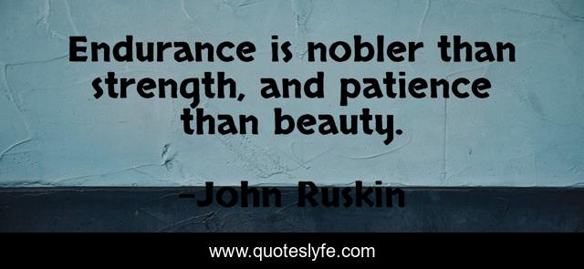 This page presents the quote "Endurance is nobler than strength, and patience than beauty.". Author of this quote is John Ruskin. This quote is about patience, endurance, beauty,.