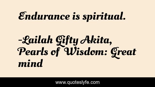 "Lailah Gifty Akita, Pearls of Wisdom: Great mind Quotes." Quoteslyfe.com, 2025. Tue. 09 Dec. 2025. <https://www.quoteslyfe.com/quote/Endurance-is-spiritual-178775>.