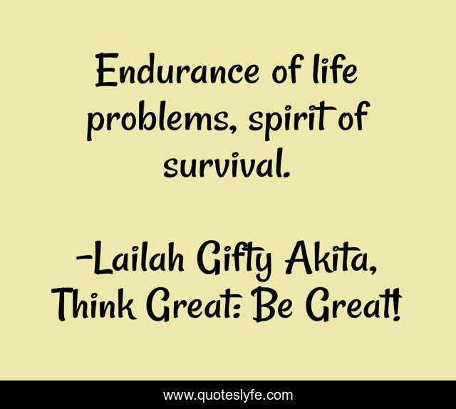 "Lailah Gifty Akita, Think Great: Be Great! Quotes." Quoteslyfe.com, 2025. Tue. 09 Dec. 2025. <https://www.quoteslyfe.com/quote/Endurance-of-life-problems-spirit-of-survival-239853>.