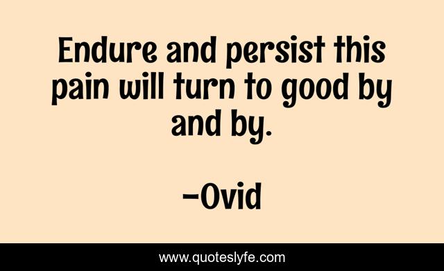 This page presents the quote "Endure and persist this pain will turn to good by and by.". Author of this quote is Ovid. This quote is about turn, good, pain,.