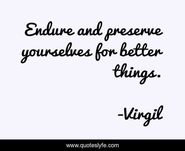 "Virgil Quotes." Quoteslyfe.com, 2025. Fri. 05 Dec. 2025. <https://www.quoteslyfe.com/quote/Endure-and-preserve-yourselves-for-better-things-271588>.
