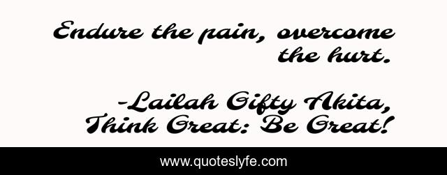 "Lailah Gifty Akita, Think Great: Be Great! Quotes." Quoteslyfe.com, 2025. Mon. 08 Dec. 2025. <https://www.quoteslyfe.com/quote/Endure-the-pain-overcome-the-hurt-280350>.